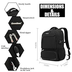 【Large capacity with Multi-compartment.】Bag full dimensions: 18.5×12.6×7.0 inches. It is roomy for carrying 15.6 inches laptop, 10+ books, documents, iPad, 2-3 days summer clothes and other items you need. The insulated room can carry 2-3 big lunch boxes, fruits, drinks etc.