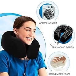 🛫 Pure Memory Foam Neck Pillow: Our airplane pillow is comprised of 100% reminiscence foam and makes use of your physique warmth to mould to your neck and shoulders. It minimizes stiff necks and discomfort related to sleeping in uncomfortable seats. Our neck relaxation pillow features a crystal velvet cowl that is gentle, breathable, simple to take away, and washer and dryer protected