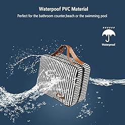 UPGRADED MATERIAL& ZIPPERS:This waterproof travel organizer is made of high quality PVC fabricI.It’s waterproof,lightweight and quick-drying, no worry about the bag and the toiletries getting wet.The waterproof pockets with SBS zippers are durable and stronger than similar products on the market ,and it can support heavy travel accessories kit and not easy to break!